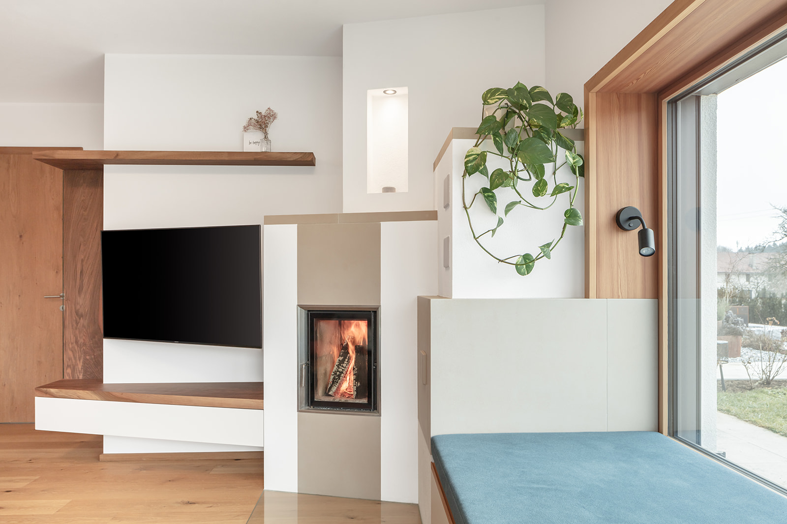 Möbelplanung, Produktion und Montage: Küche mit Essbereich, Wohnzimmer mit Wandgestaltungen und Lesefenster, Eingangsbereich, Garderobe
